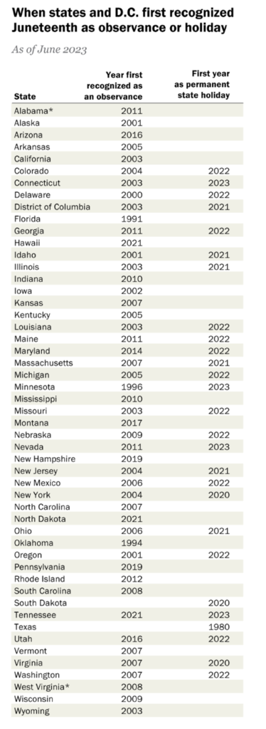 More than half of states will recognize Juneteenth as an official public holiday in 2023